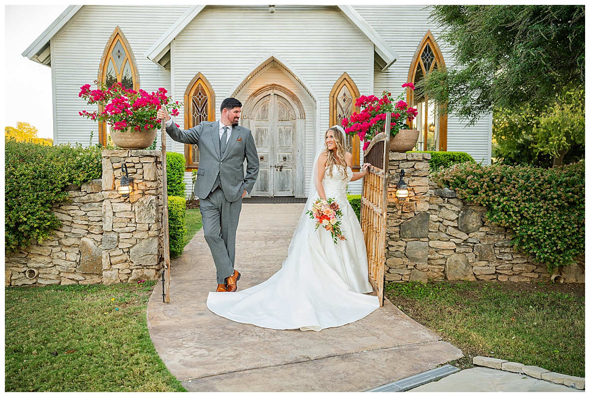 The ceremony took place in the gorgeous open-air chapel at Brooks at Weatherford, which provided the perfect backdrop for their vows. They sealed their union with rings and a unique sand ceremony using an hourglass, such a meaningful and creative touch.