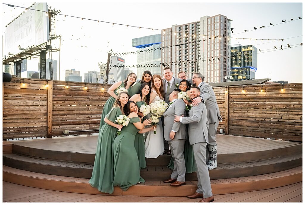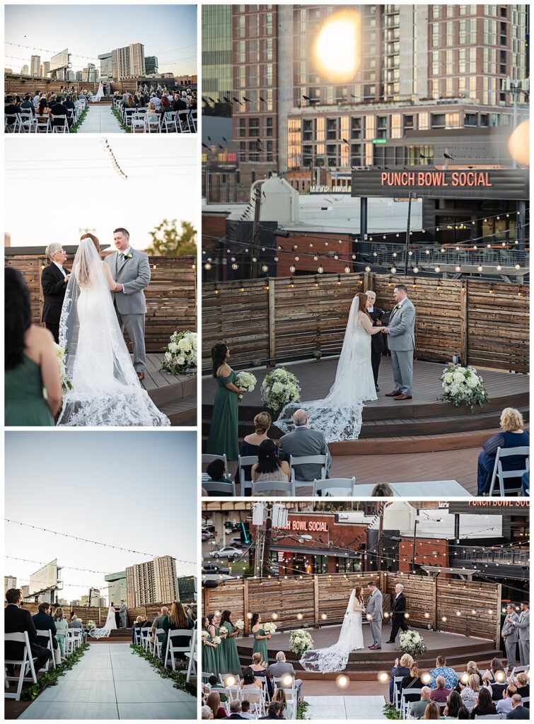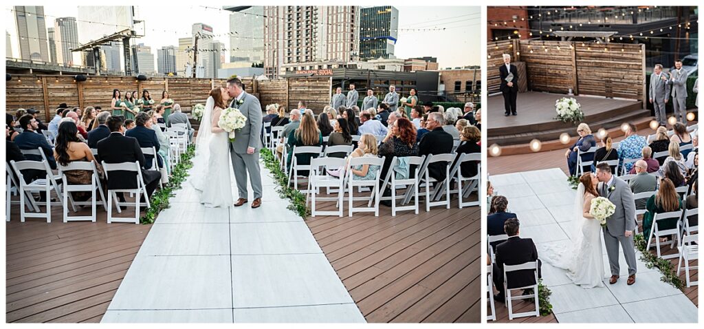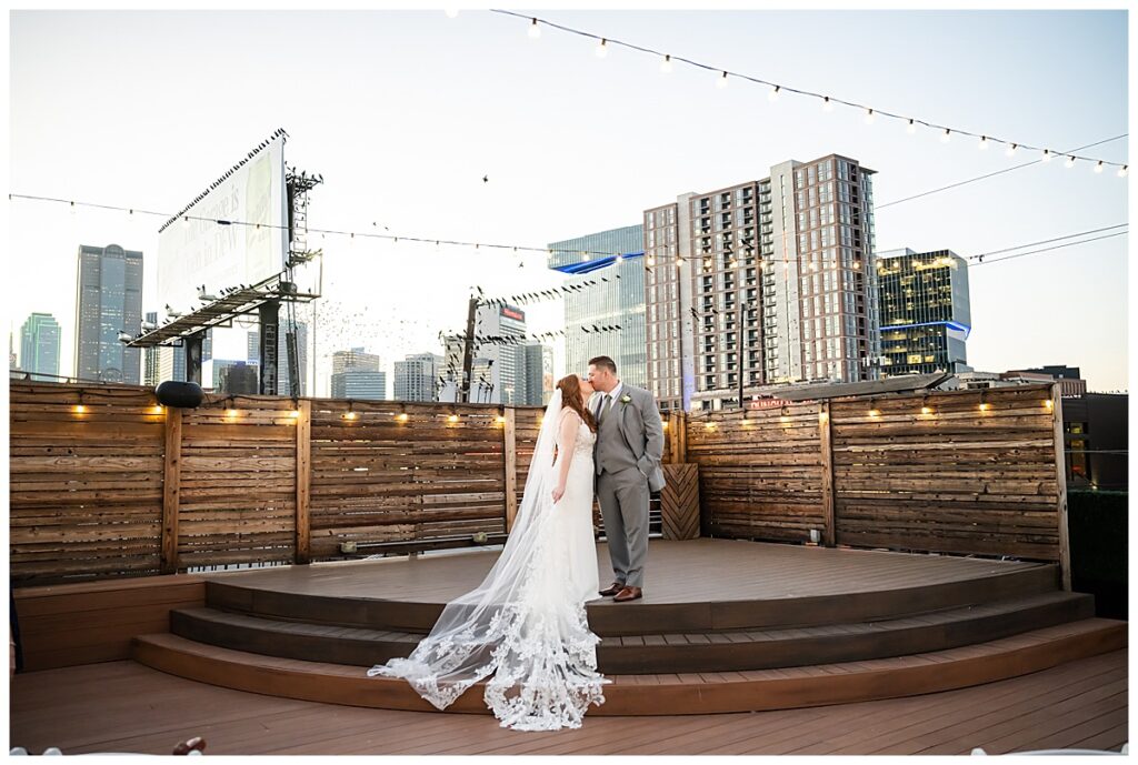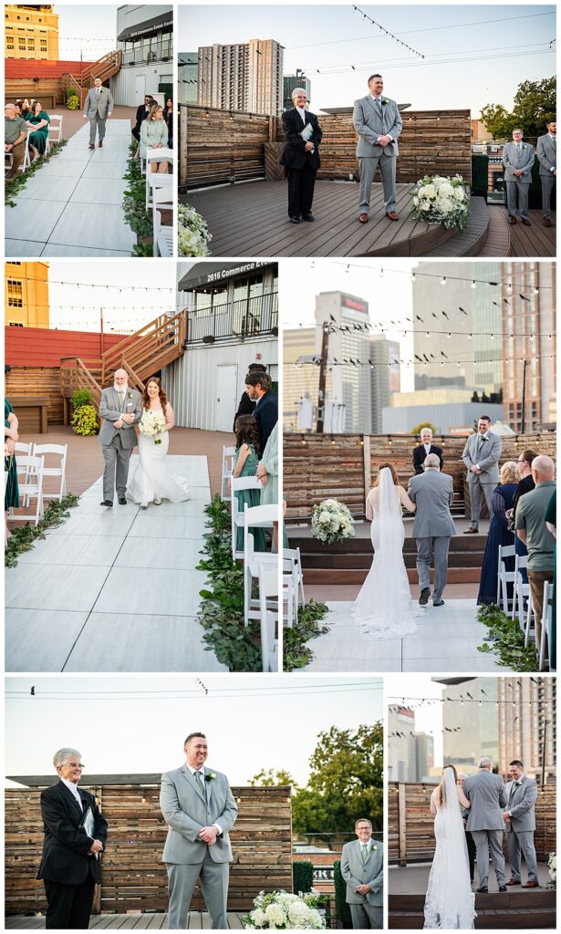 Their ceremony took place on the rooftop, making their wedding at 2616 Commerce truly unforgettable. The sky was a beautiful shade of blue, the weather was perfect, and the rooftop setting created an elevated and romantic atmosphere. Surrounded by their closest family and friends, Abby and Brady exchanged vows in a space that felt both intimate and modern.