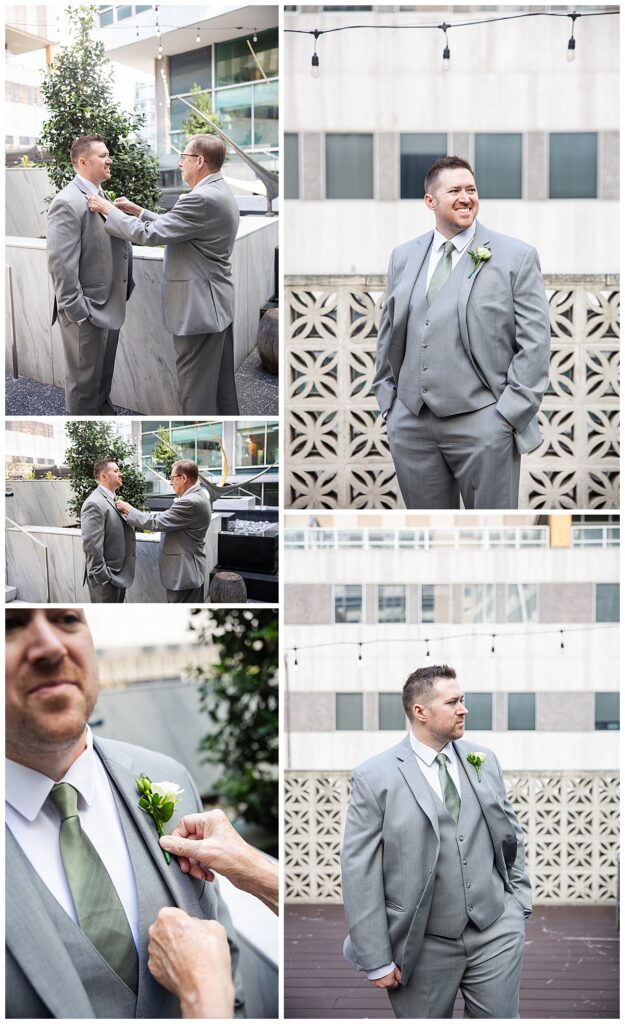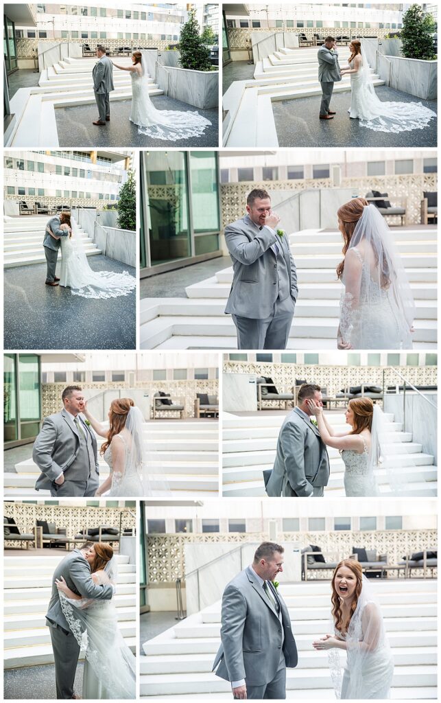 Abby and Brady were married on a Friday at 2616 Commerce in Dallas, and every part of the day felt elevated and timeless. They got ready at The Statler Hotel, which provided a stunning backdrop for their getting-ready photos. The classic architecture and soft light made those early moments even more beautiful.