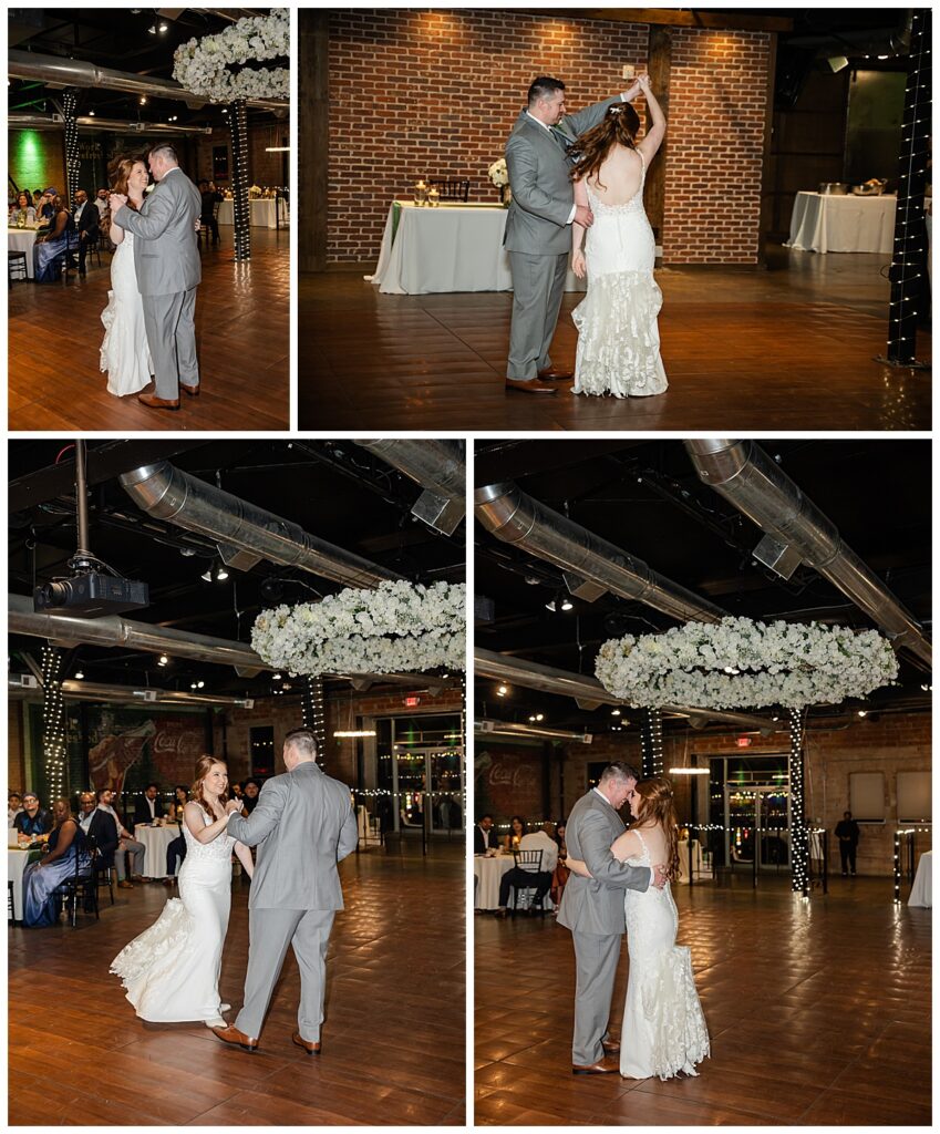 Once they were introduced into the reception, it was time to celebrate. Abby and Brady shared their first dance together, kicking off an evening full of joy and energy. One of the most thoughtful details of the night was inviting each table to take a photo with the couple on their way to the buffet line. This ensured that every guest was photographed with Abby and Brady, creating meaningful memories for everyone.