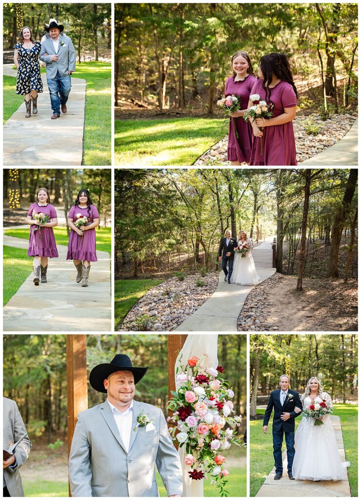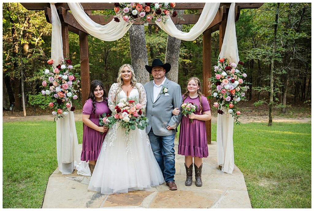 The color palette was a gorgeous mix of wine and shades of pink, and the flowers were absolutely stunning, lush, romantic, and the perfect touch for a fall celebration. Bailey shared a few special moments before the ceremony, including a sweet first look with her dad and her nephews that had everyone smiling. One of the most emotional moments of the day was when Aaron saw their daughters all dressed up, and there were definitely a few happy tears.